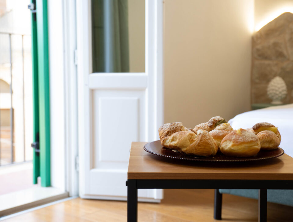 Scopri le nostre camere, ognuna pensata per offrirti il massimo comfort in un ambiente elegante e accogliente. Dalle affascinanti pareti in pietra alla luminosità dei balconi con vista